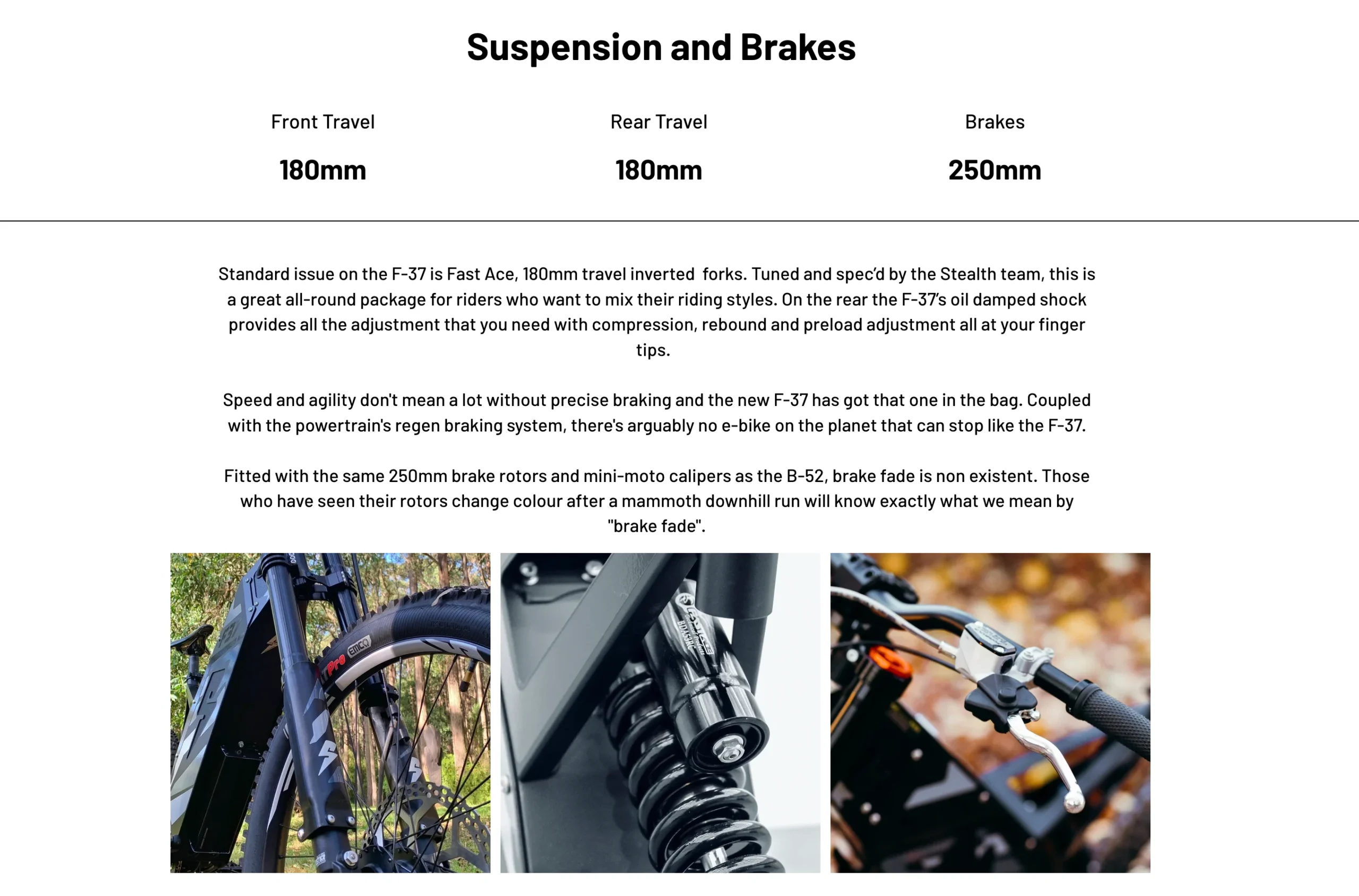 Stealth F37 Full Suspension Electric Bike – in stock now! When your trail riding needs elevating to the next level, the F-37 is your weapon of choice. Commonly referred to as the B-52’s baby brother, the F-37 has the pace…